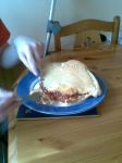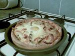 Report: A true, taste sensation, I'll make one for you some time. I'm going to make my next one with a madras curry sauce topped with cheese. Curry pizza pie! Well, I'll still be adding the egg on top - eggs make everything good.
