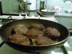 Cheese burgers, onion and chips. The reason the burgers look a bit odd is because there is one and a half burgers on each bun. Gotta fill the space. Can't be having abit of just bread and no meat.